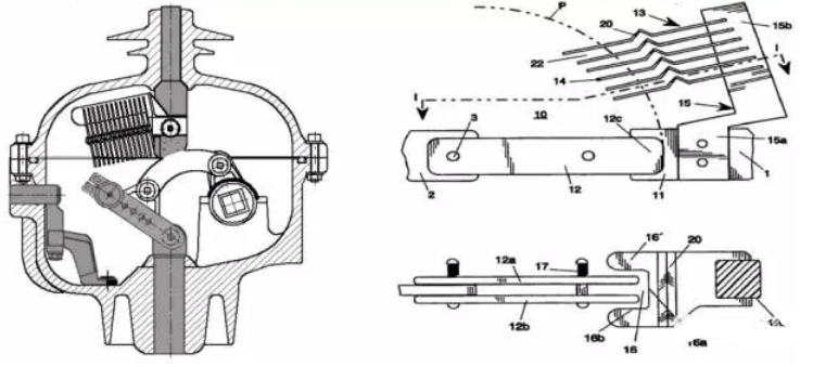 開關(guān)采用SF6氣體滅弧,分閘時(shí),觸頭斷開瞬間產(chǎn)生電弧,每相觸頭上的滅弧柵把電弧拉長分段冷卻,至電流過零時(shí)熄滅。