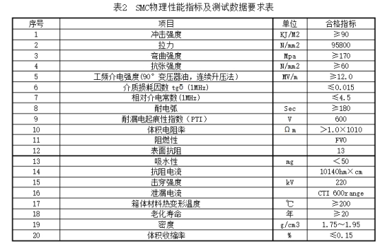 2.3.1分支箱外殼選用S304不銹鋼材料,箱體、門體材料厚度均不該小于2毫米,或SMC復合材料箱體,SMC物理功用目標及測試數據滿意表2的要求。