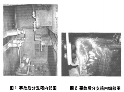 2007年7月18日某地輸配電線路發生跳閘,在巡線至石板坡電纜分支箱時,發現電纜分支箱兩端的開關柜俑壁發生嚴峻變形、601進線開關柜面板有飛弧、放電及炭黑等現象。外觀上,箱體內水跡顯著。儀表柜門已銹死,不得不撬開,操作安排已無法滾動、只能將其崩潰后翻開關柜門。翻開#601開關柜電纜室發現:計量TⅣV的熔斷器及支撐絕緣子兩相悉數炸碎、另一相熔斷器發生決裂,支撐絕緣子發生破損,AT表面有爬電痕跡,柜體多處存在放電痕跡,如圖1所示。翻開相鄰距離檢查,情況相同嚴峻,導電部分受潮嚴峻,銅排及固定鏢栓已長鹵銹,柜體表面有多處爬電痕跡,見圖2。該分支箱為某電器廠制造,2003年投運、僅3年多。
