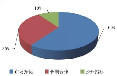 經過調研,所查詢參與者單位對固體絕緣環網柜產品經過商場擇優的占比60%;長期協作的占比30%;聯盟無;揭穿投標的占比10%。具體如下圖3所示。